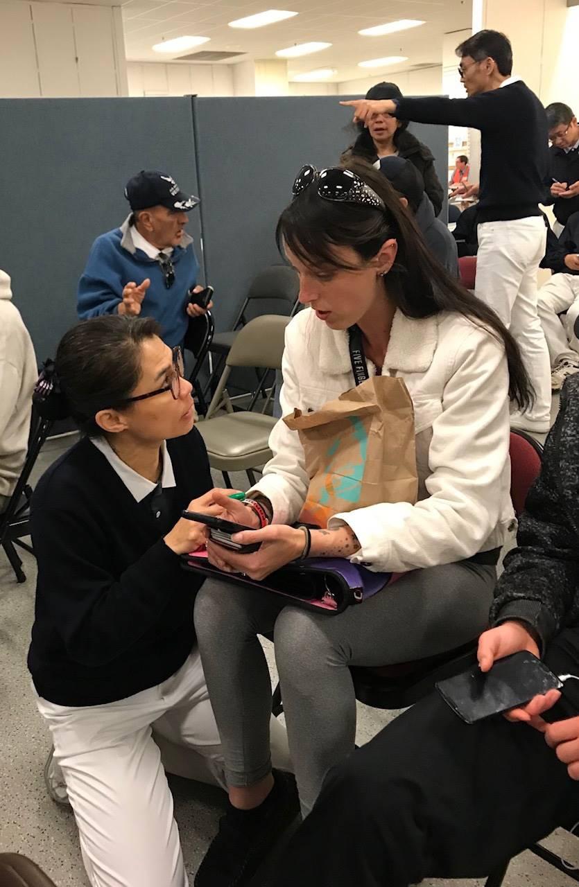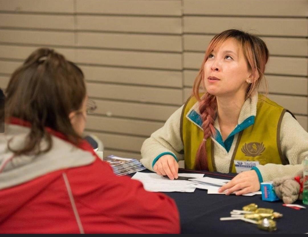 清晨四點多就起床,張文馨和媽媽一起搭上從奧克蘭(Oakland)六點準時出發的大巴士,來到奇科市的救災中心,擔任一日志工。救災中心坐滿了等待登記和領取現值卡的災民,沒有經驗的張文馨,一開始,坐在有經驗的志工旁,觀察學習如何與災民互動,給予實際溫暖的關懷。