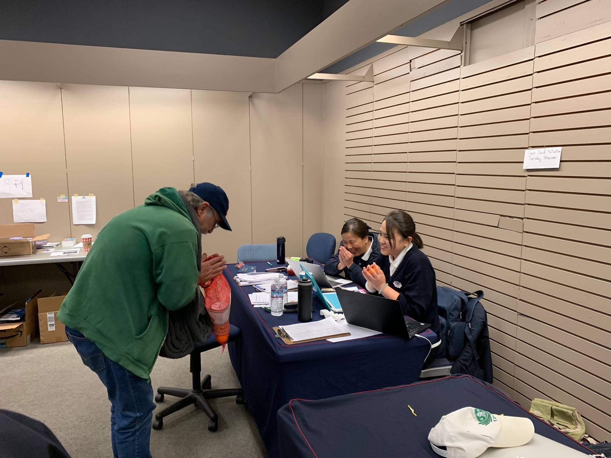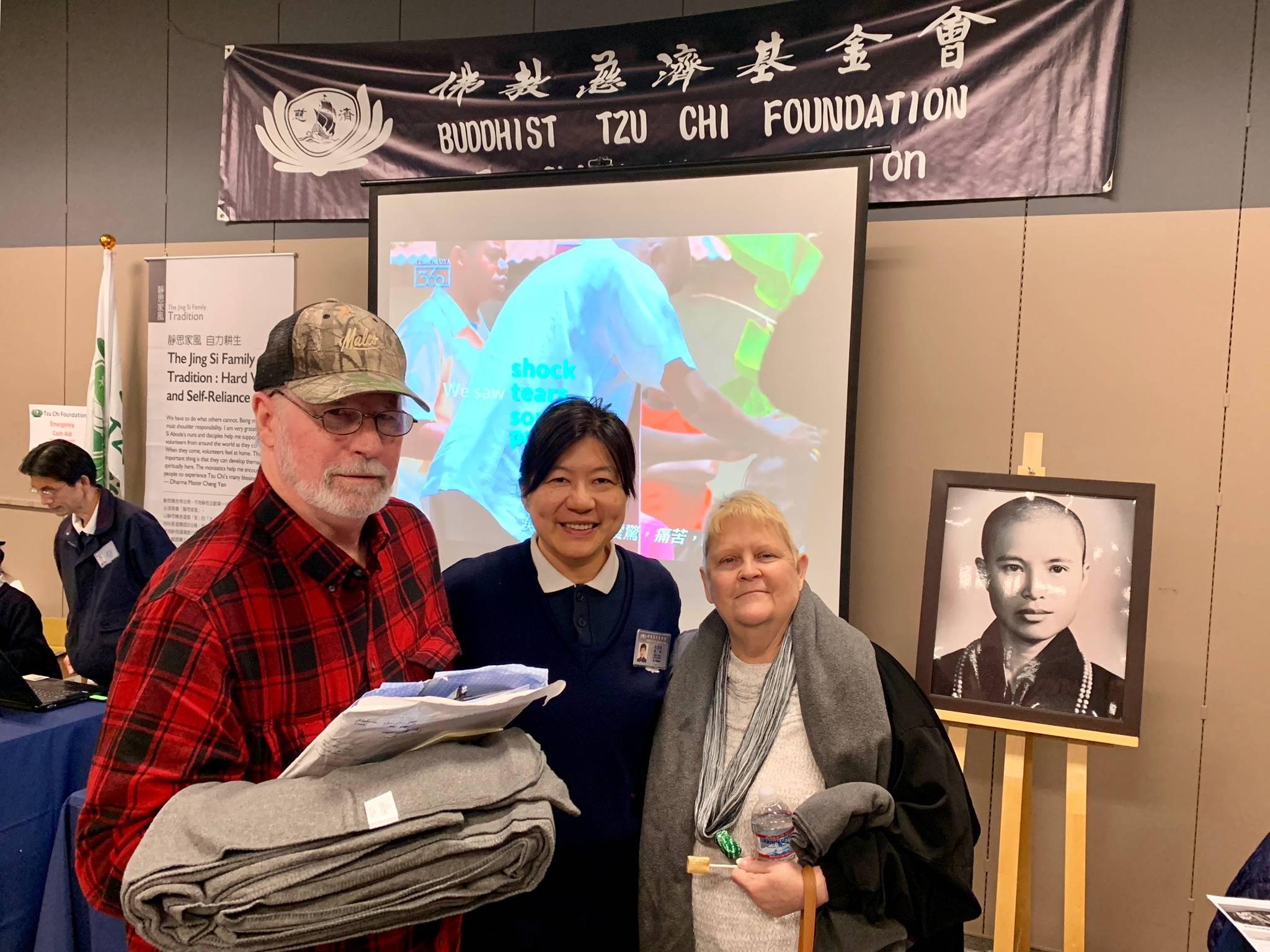 Gerald and Marie are staying with their son’s family in Chico for now, but his son also took in two other families who were also evacuees. There have been lots of tensions for four families in a crowd space, so Gerald and Marie decided to go to Washington to stay with another family member. “Getting your cash card is the last thing we do at Chico, we will drive up to my sister’s in Washington now,” said Gerald. The couple were deeply touched by Tzu Chi’s story and wanted to take a photo with Master Cheng Yen’s portrait on display. “You guys are godsend,” said Gerald.