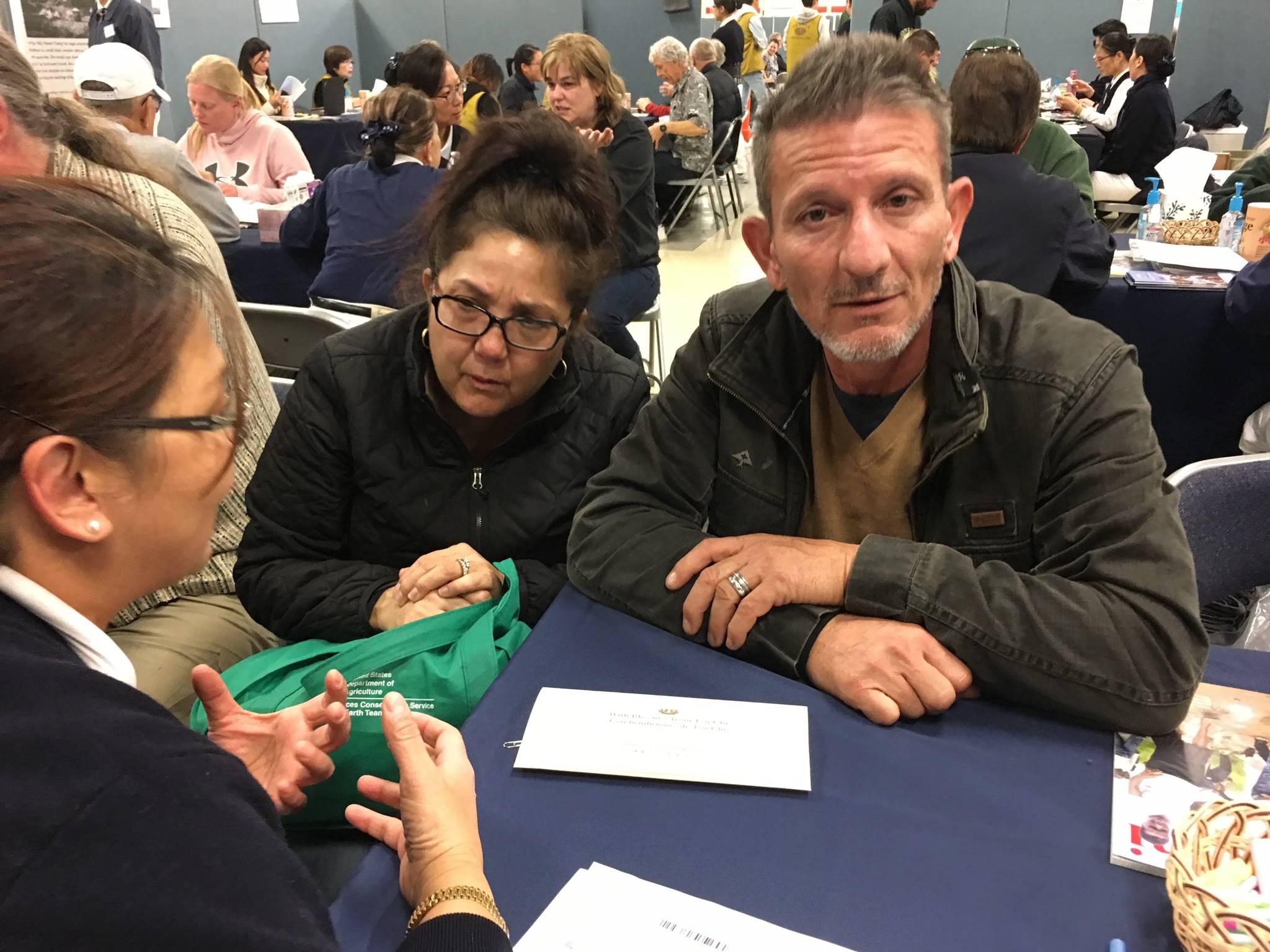先生相扶持多年,從沒想到災難會突然來襲,她感謝今天在DRC收到慈濟所贈與的捐款,可以及時補助他們租房的需要;言談中夫妻始終緊握彼此的雙手,流露出深切的疼惜之情。